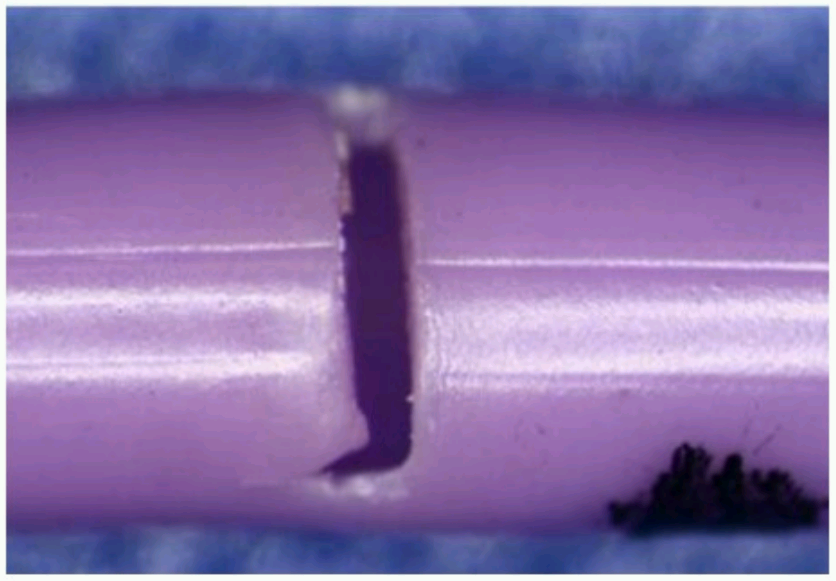 BD公司发现受影响导管的材料疲劳泄漏增加,主要表现为导管体的横向/周向裂纹,见图2。BD公司的调查表明,这是由于用于制造导管的材料树脂的问题。